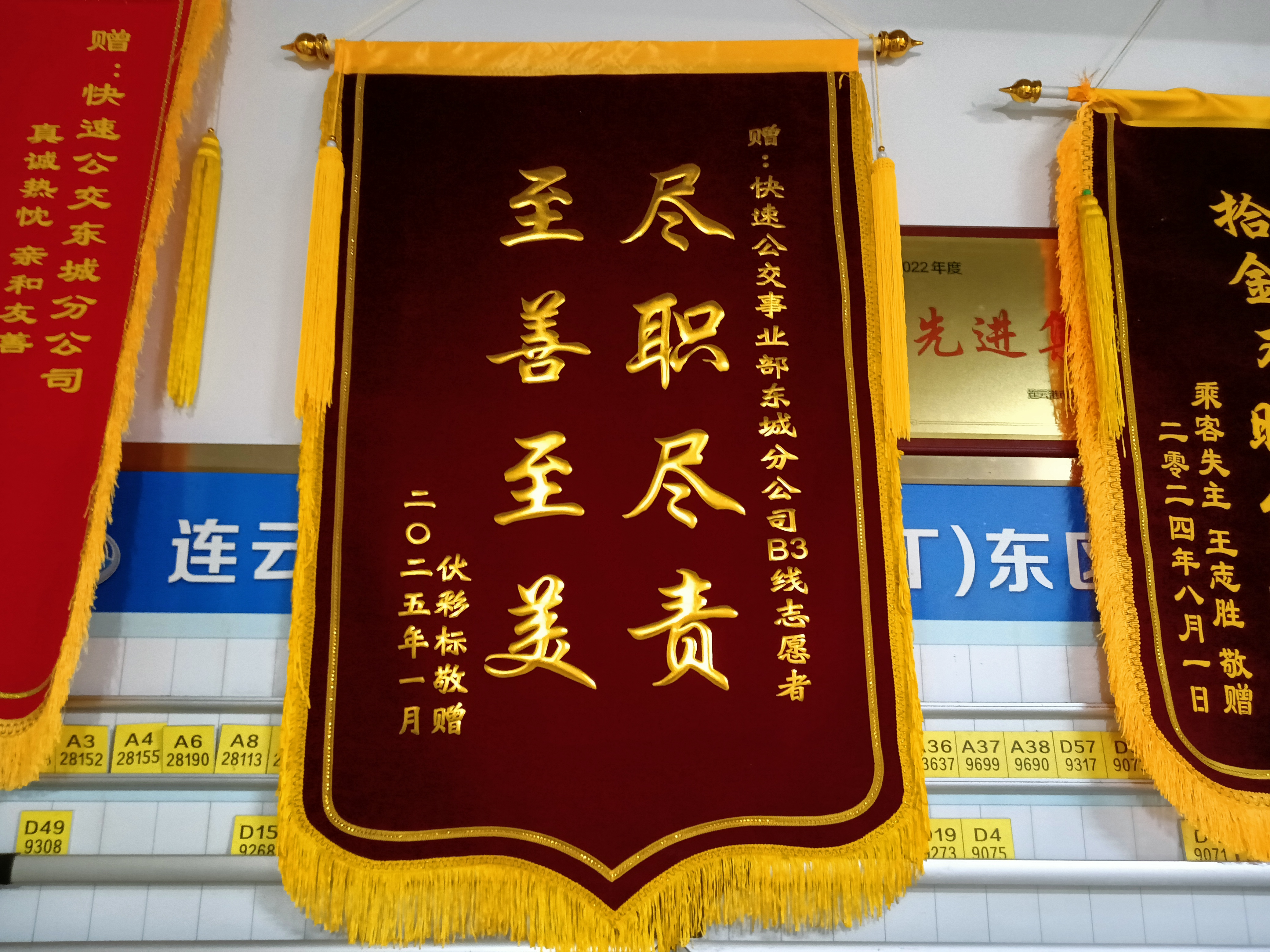 為了表達(dá)感謝,掌阿姨特意讓上大學(xué)放假回來(lái)的孫女定制了印有“盡職盡責(zé) 至善至美”的錦旗,表達(dá)對(duì)志愿者們辛勤付出的肯定。下一步,B3敬老文明線將繼續(xù)為乘客提供更加周到、細(xì)致的服務(wù),努力做好公交志愿服務(wù),深化公交社會(huì)形象,彰顯公交的責(zé)任與擔(dān)當(dāng)。